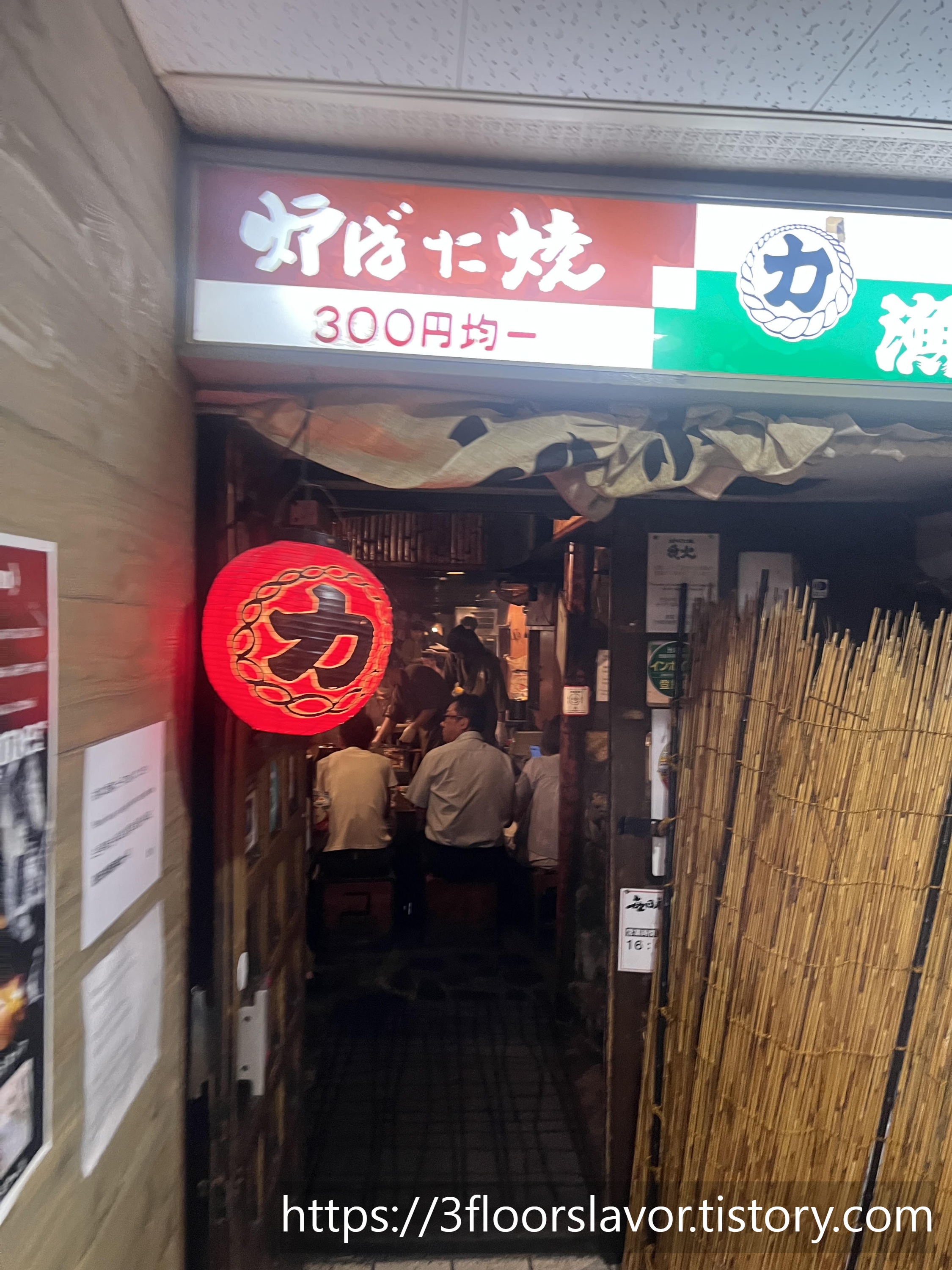 이사리비 마츠다꼬치는 오사카역과 우메다역 바로 옆에 위치해 있습니다. 주변 지역 자체가 일본 회사도 많고 일본인들이 이용하는 백화점도 많아 현지인들이 주로 찾는 곳 입니다. 색다른 경험을 위해 찾아오는 관광객들도 많아 한국어 메뉴판도 준비되어 있어 근방에 숙소가 있다면 일부러 찾아갈 가치가 있는 식당이랍니다. 근처에 가면 위치가 햇갈리는데... 지하?로 내려가는 계단 밑에 아래 사진과 같은 간판을 찾아 들어가시면 됩니다. 다 300엔이라는 뜻이겠죠...
