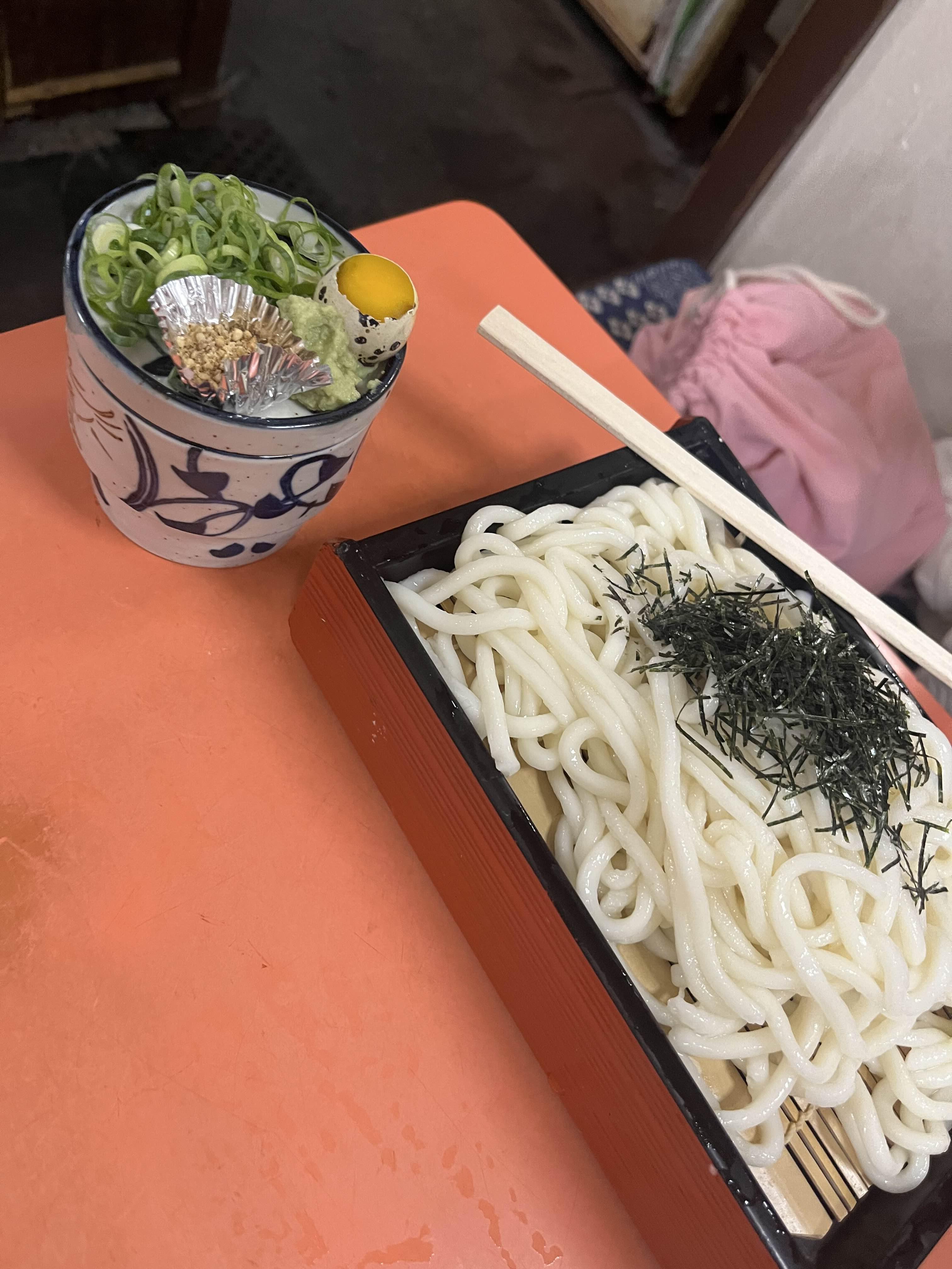 제가 갔을 때는 자루소바가 마감되어 자루우동을 시켰는데 자루우동 또한 맛있습니다. 면 식감이 특이하고 저 메추리알이 너무 귀여워서 사진에 담을 맛도 납니다. 시원한 소스에 찍어 먹는 자루우동은 더운 날씨에 특히 잘 어울리는 메뉴예요. 깔끔하고 상쾌한 맛이 특징이에요.